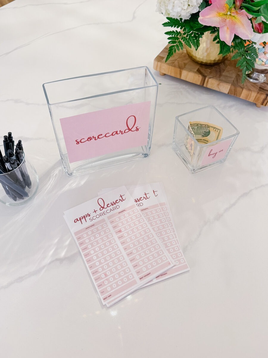 Each guest received a cute scorecard I designed in Canva and rated every appetizer and dessert on a scale of 1 to 5, with 5 being the best. After tasting everything, they also wrote in their single favorite appetizer and favorite dessert overall.