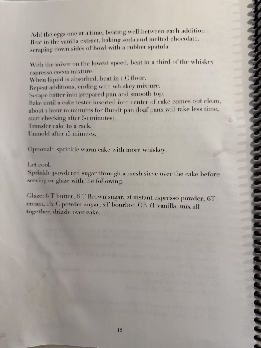 - 2nd Place: Tyler’s Bourbon Cake with Coffee Ice Cream (family recipe below) tied with Lyndsey’s Cookie Dough Pretzel Bites.
