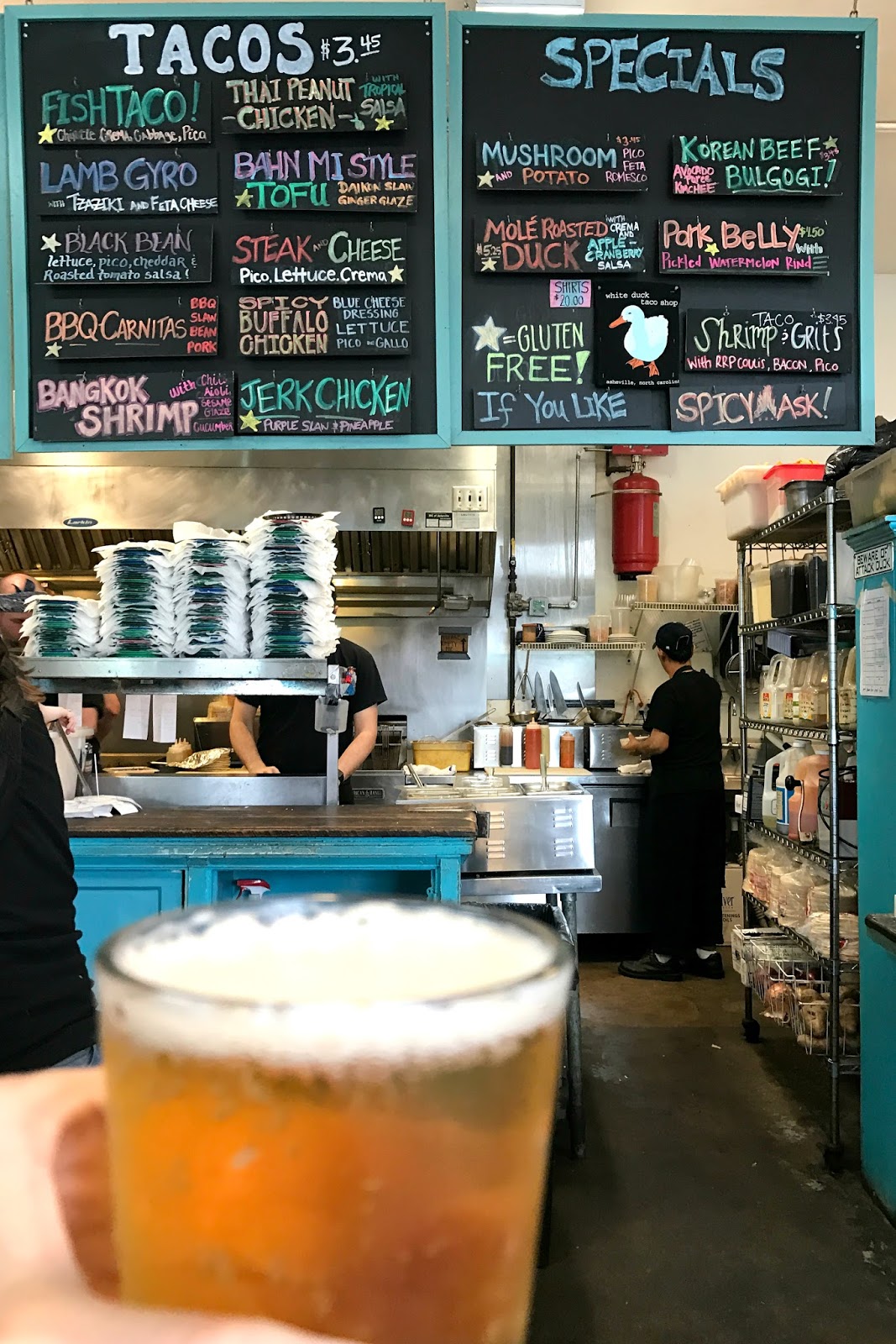 Most of our Asheville trips together have been spent in a tent, cabin or inexpensive hotels, so this was definitely our version of glamping. After dropping off our bags we ubered to lunch at White Duck Taco Shop.
