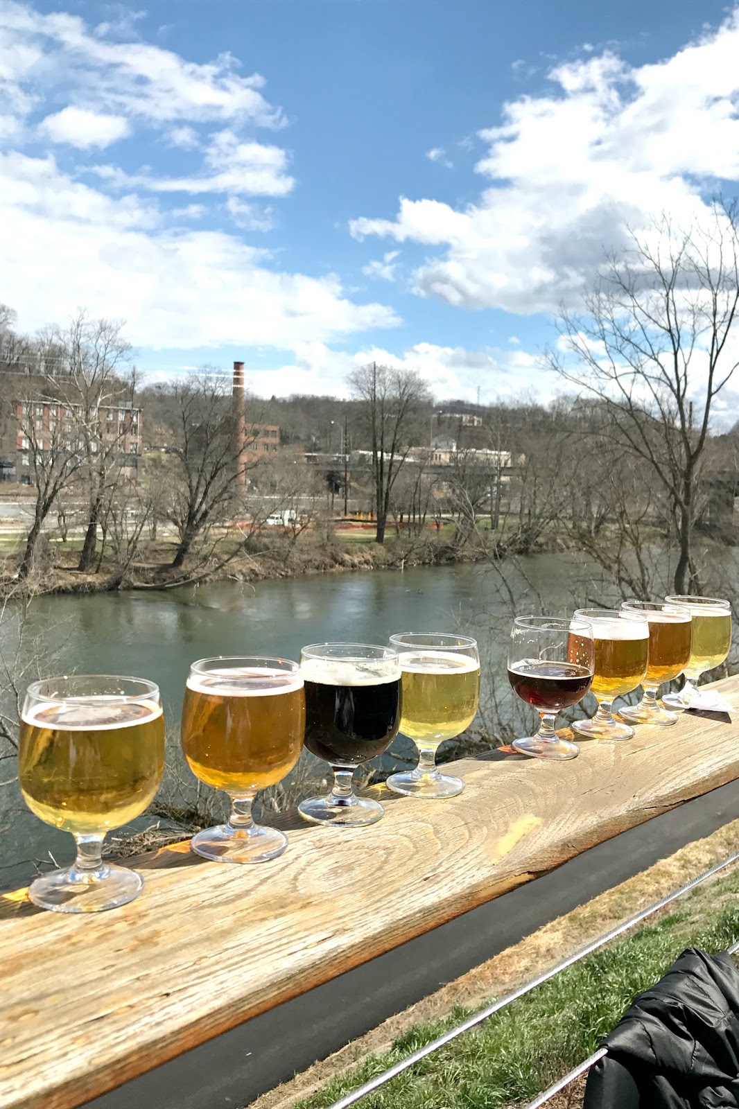 After filling our bellies with tacos we walked across the bridge to New Belgium Brewery to continue our day-drinking. This place was seriously the coolest Asheville brewery we’ve been to — and we’ve been to a LOT. The brewery sits on the river and the day couldn’t have been more beautiful for sitting on the patio. We accidentally stayed the entire day here and had way too much fun.