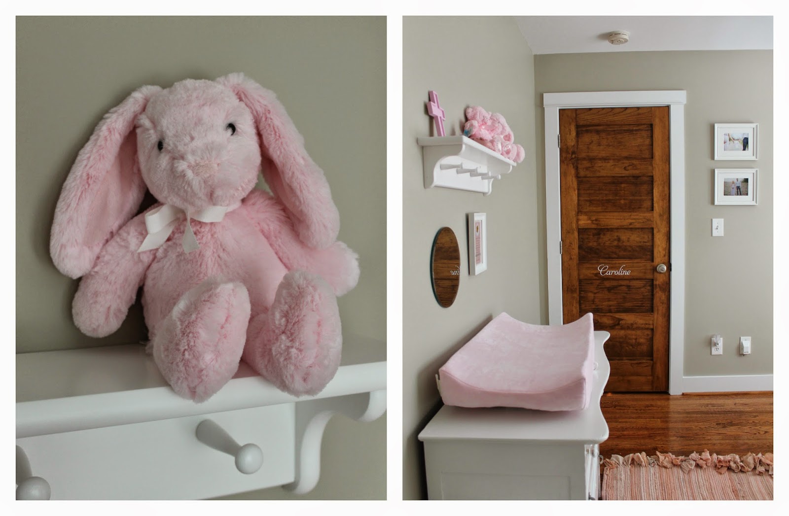 The bookshelves have been one of my favorite projects to date. We picked up 4 spice racks from Ikea and spray painted them white. I love how Matt placed them low enough for Caroline to reach her books once she’s mobile.