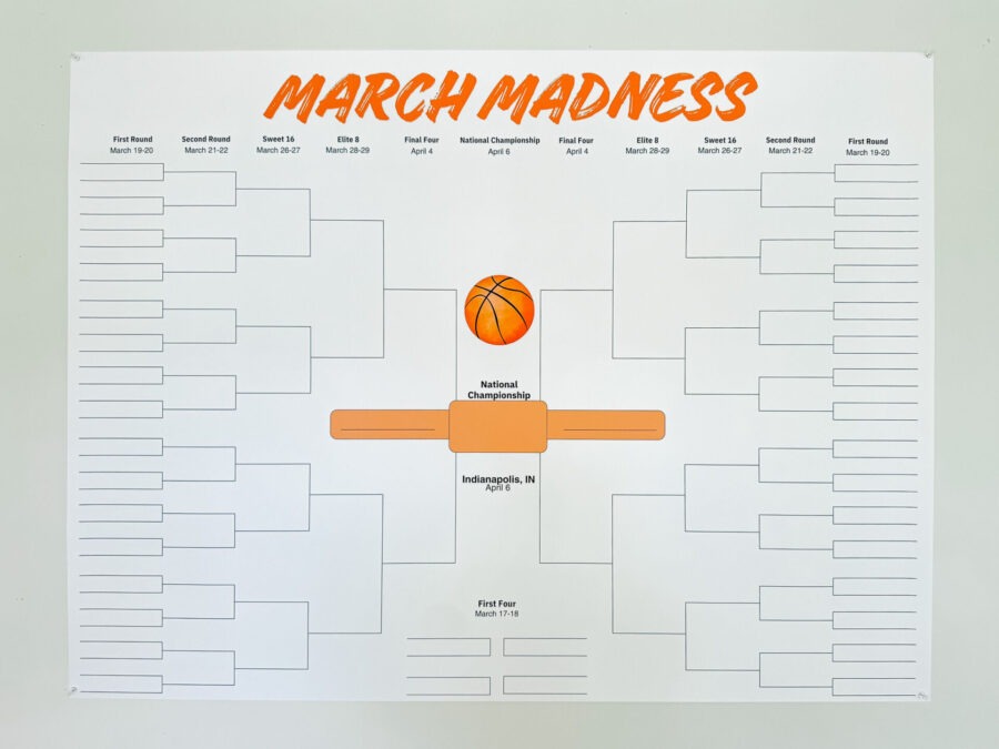 I made Thomas a massive March Madness bracket this week and he is absolutely obsessed with it. I used Canva to make a printable bracket and had it printed same-day at Staples as a 3′ x 4′ matte polypropylene banner, and it turned out SO good! Such a fun way to get the kids (and honestly the whole family) into the tournament. You can download my printable bracket HERE.