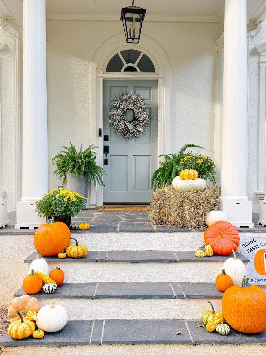We got a head start on fall this year with a pumpkin setup from Picture Perfect Porches! I’m always amazed at how a few pumpkins can make things feel instantly seasonal. Since we decorated a little early, I’m holding off on adding mums until the temps drop a bit, but it already feels festive walking up to the front door.