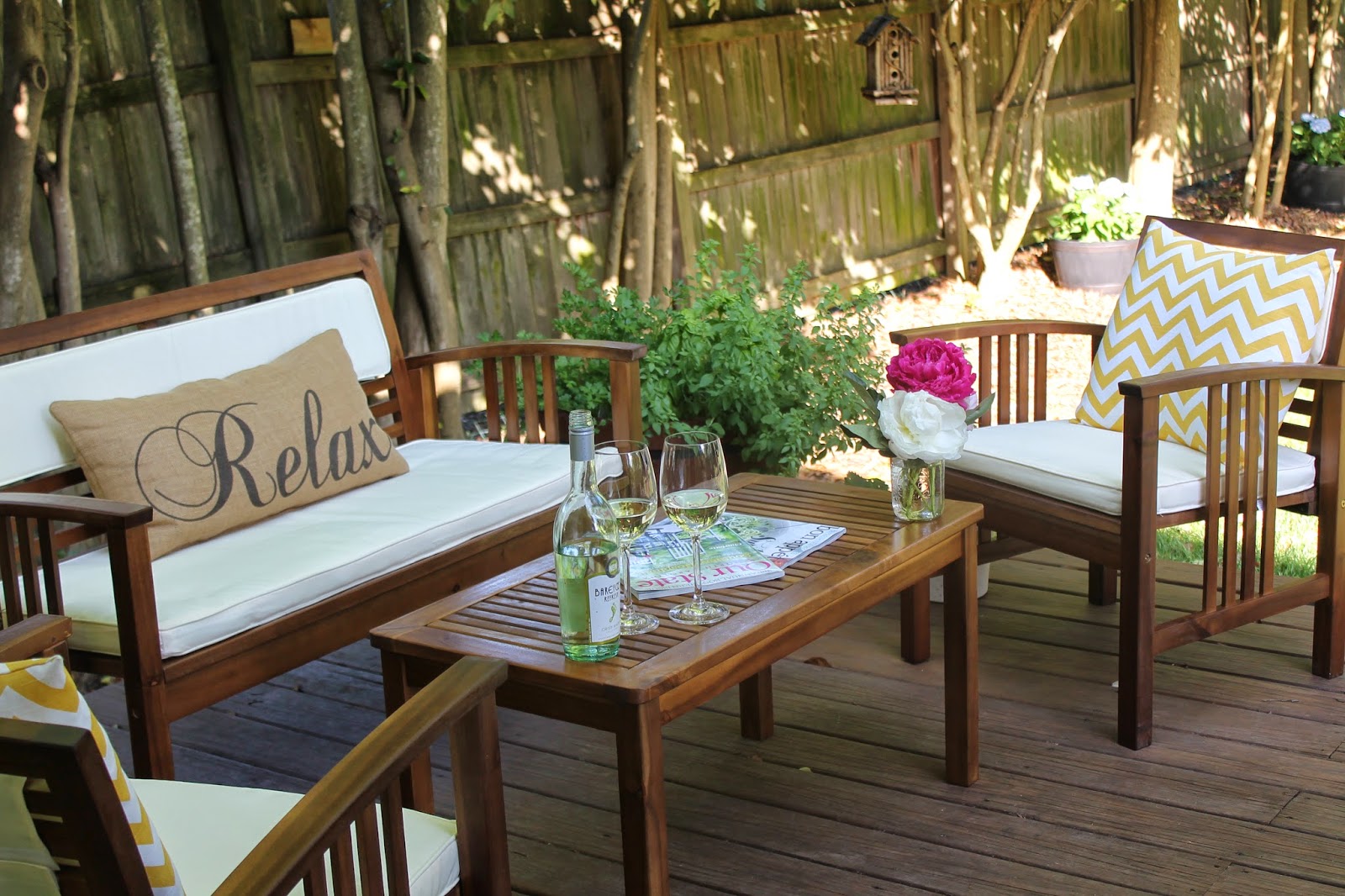 – TWO – Now that the pollen has died down, we’re planning to wipe down our patio furniture and pull out the pillows and cushions. We picked up this 4 piece Belize Occasional Furniture Set from World Market on sale last spring.