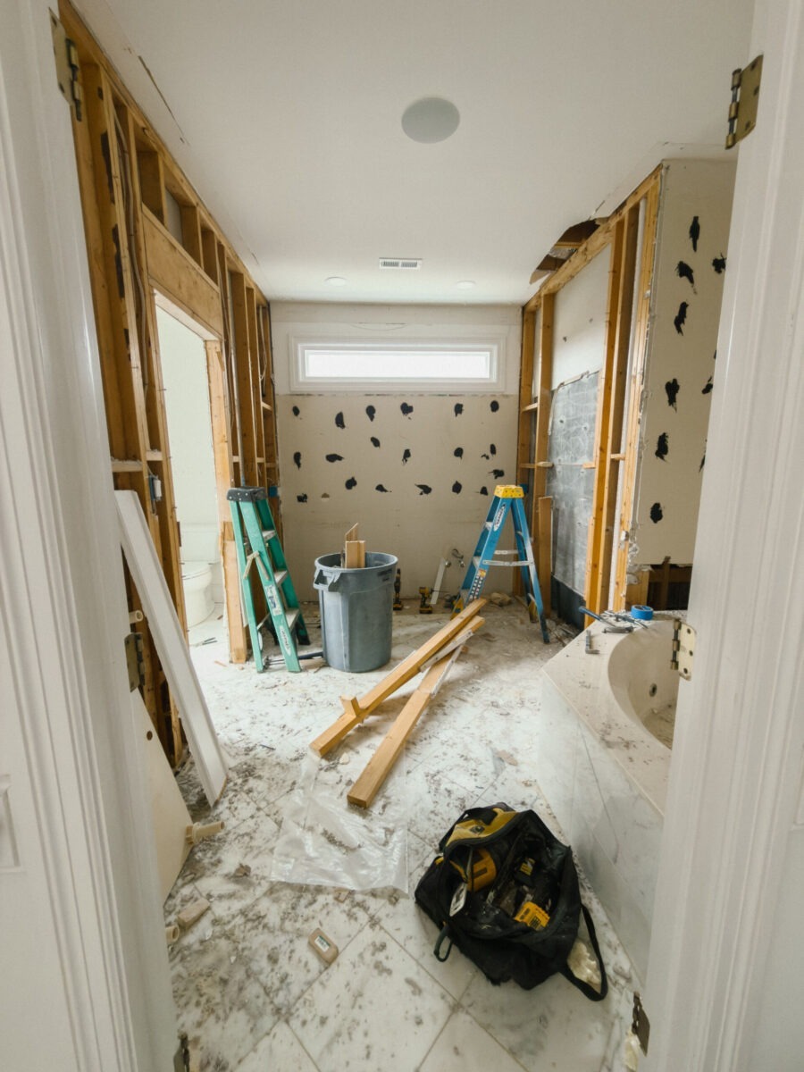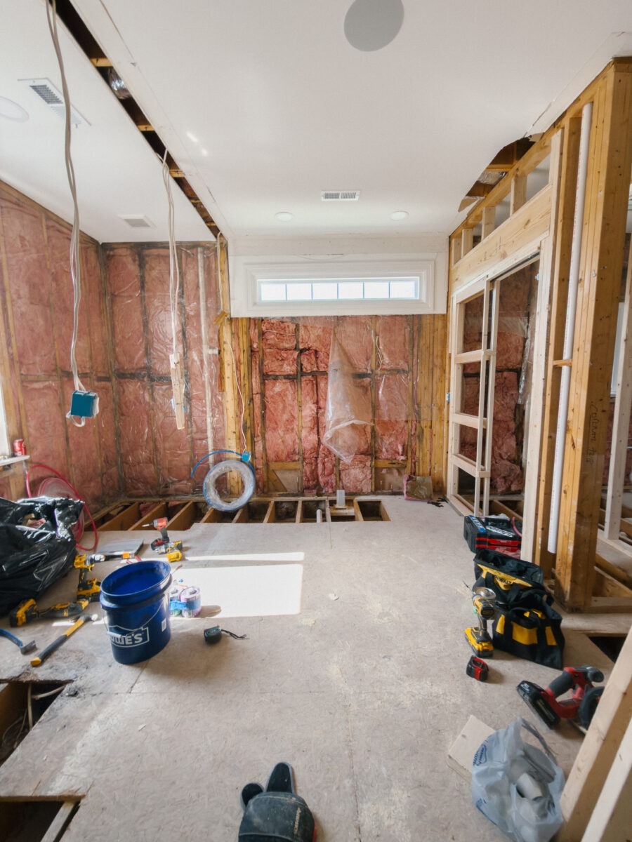 We kicked off our master bathroom renovation project this week! It’s been fun and exciting to see the progress all week, but dang, I cannot wait to get past the dusty part of the project. So far we’ve demo’d both bathrooms (we’re taking some space with another bathroom that shares a wall), framed the walls, started plumbing, and today the electrician is coming. It’s moving fast and I can only hope we keep up this speed!