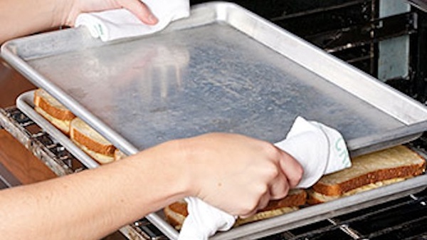 7. Make perfect grilled cheese sandwiches with a pair of baking sheets {instructions here}