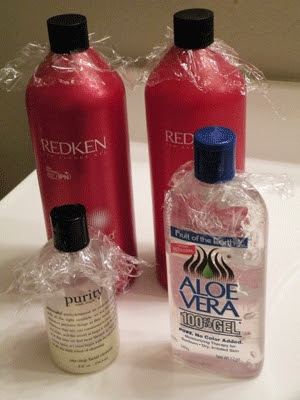2. Add a small piece of plastic wrap under your lids to keep them from leaking while traveling