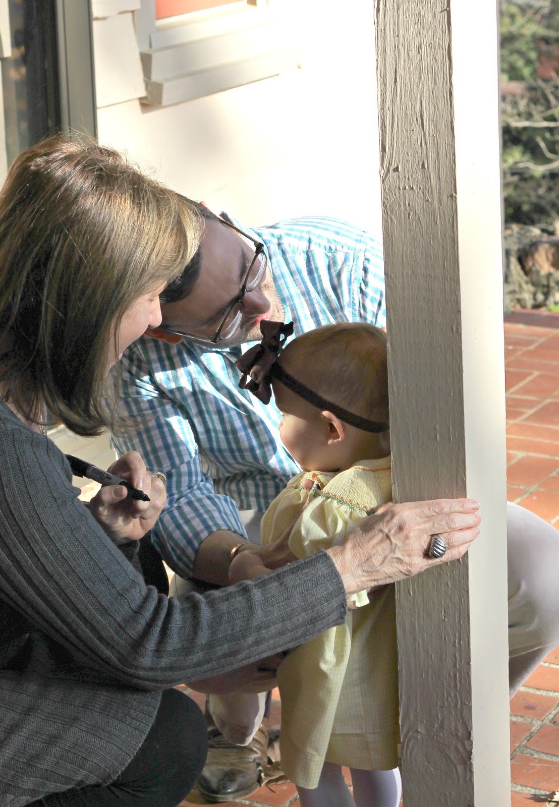 mom started this year was marking Thomas and Caroline’s height each year on an outdoor post.