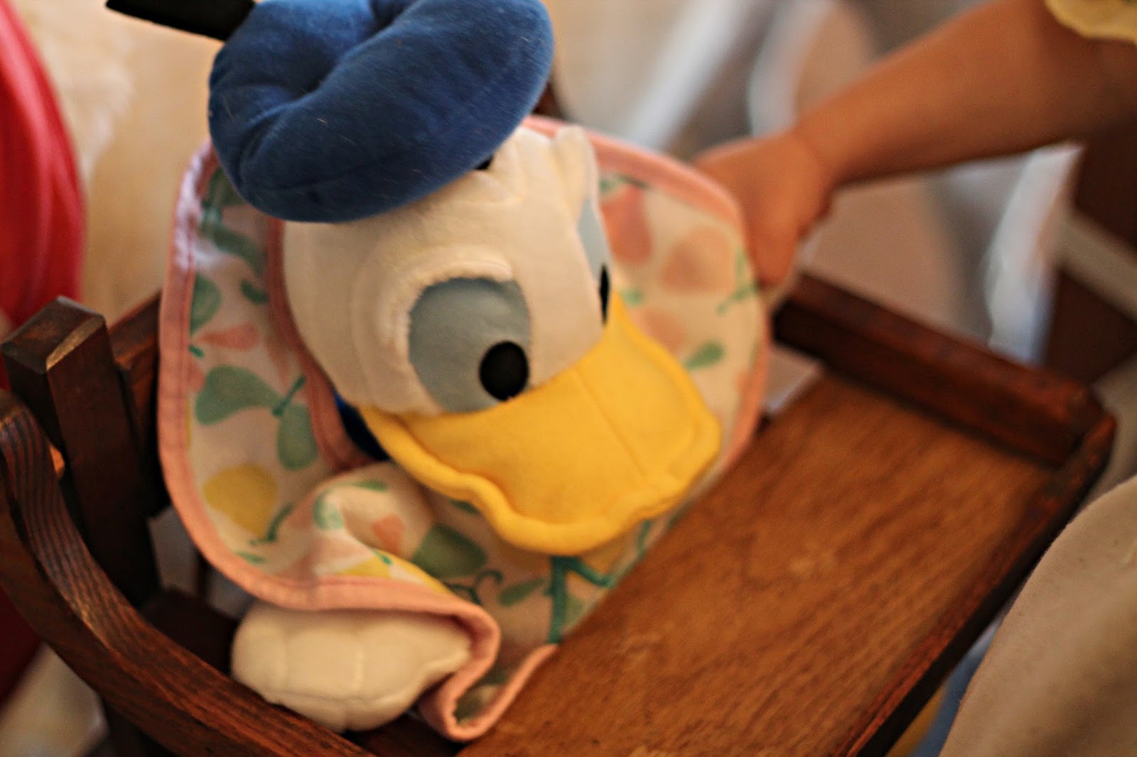 Other dinner preparations included getting Donald Duck seated at the table — Caroline’s request.
