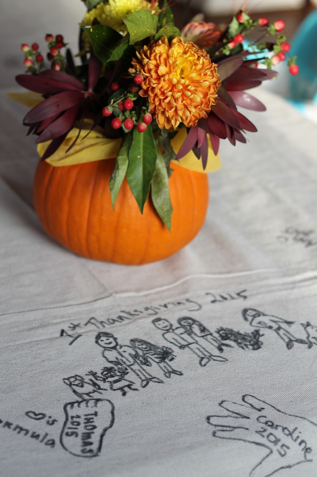 Another really fun tradition she started was covering the table with a large drop cloth. Every year each person adds a little something in permanent marker. It can be artwork, a recipe, a note, whatever!