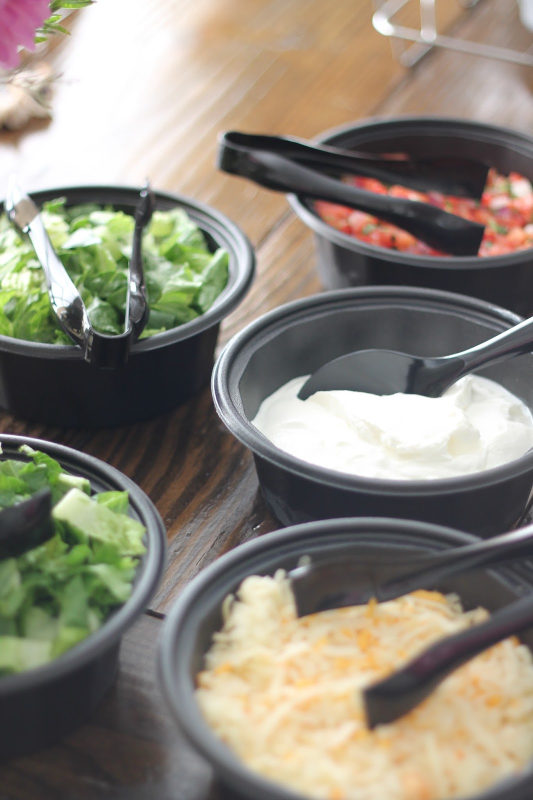 When I began planning our little shindig Matt’s only request was that I didn’t do the cooking. He knows how stressed out I can get in the kitchen trying to heat the food as guests arrive and he wanted me to be able to enjoy the party from start to finish. As much as I love doing the cooking, I agreed and let Cantina cater our party with a taco bar. It was perfect and I didn’t have to worry about a thing. They delivered it, set it up and everything was in disposables so it was super easy clean up!