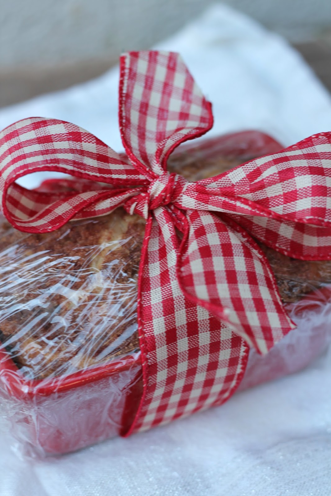 - It’s a beautiful, delicious, and inexpensive gift! Gift your loaves in a pretty ceramic dish or disposable loaf pan wrapped with parchment paper, cellophane, or saran wrap — and tie with a pretty bow or baker’s twine! If you’re feeling extra festive you can garnish with cinnamon sticks or dried orange slices!