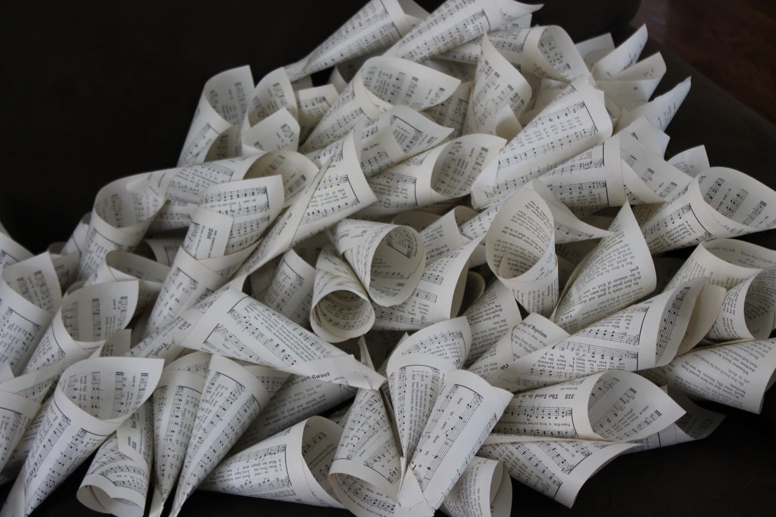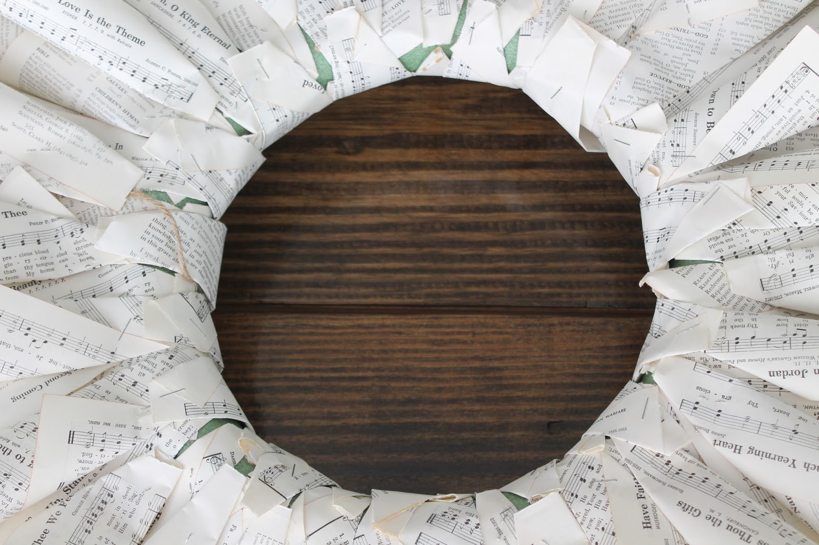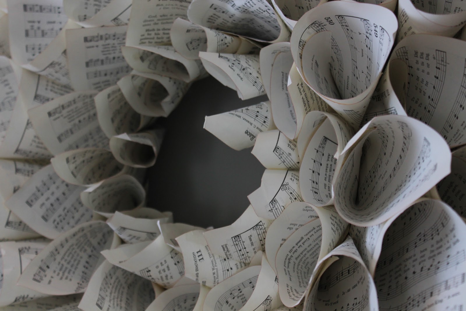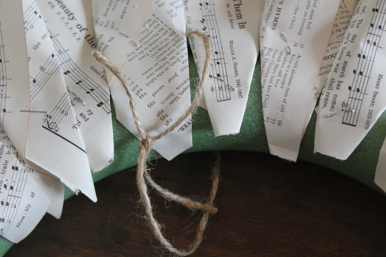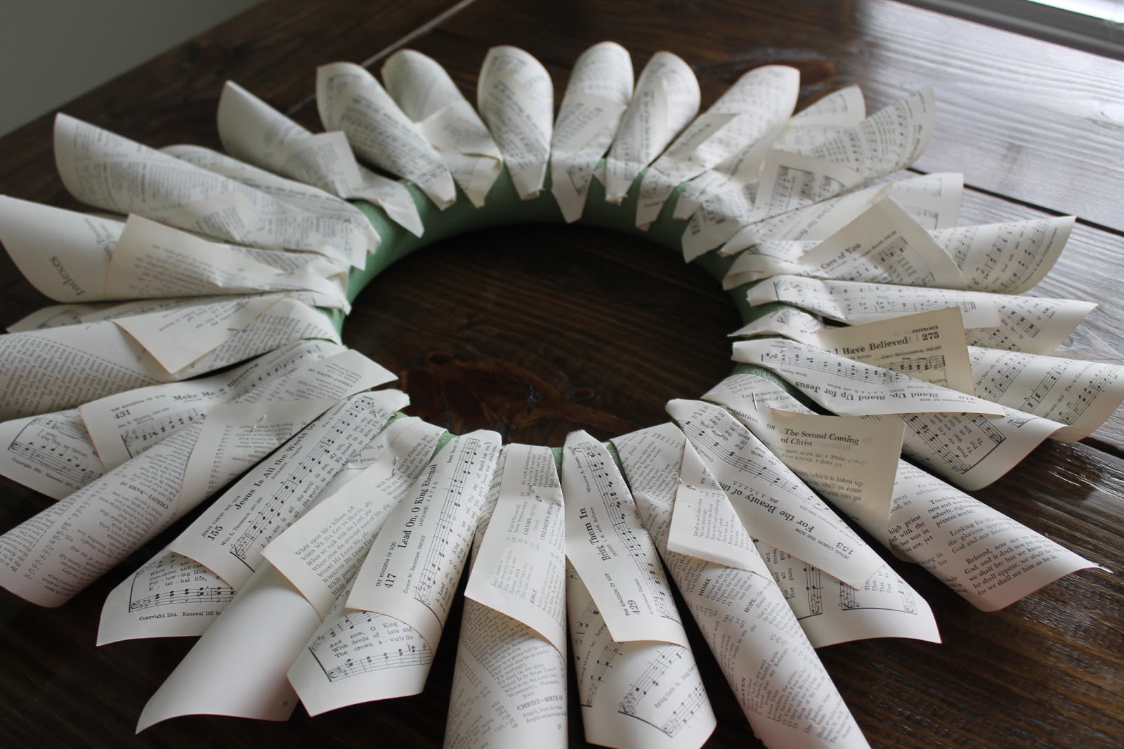 I wanted my wreath to be absolutely massive, so I went with a 16-inch Styrofoam wreath as my base. You could also use a straw or stick wreath if you prefer. To give it a more vintage feel, I decided to go with a 1952 Baptist Hymnal that I found at a local antique store. I wanted the wreath to look a bit aged rather than bright white, and this book was perfect for that! You’re going to need a ton of pages for this project, so I recommend grabbing a long book or even two—just to be safe. My hymnal had 500 pages, and I used almost the entire thing!