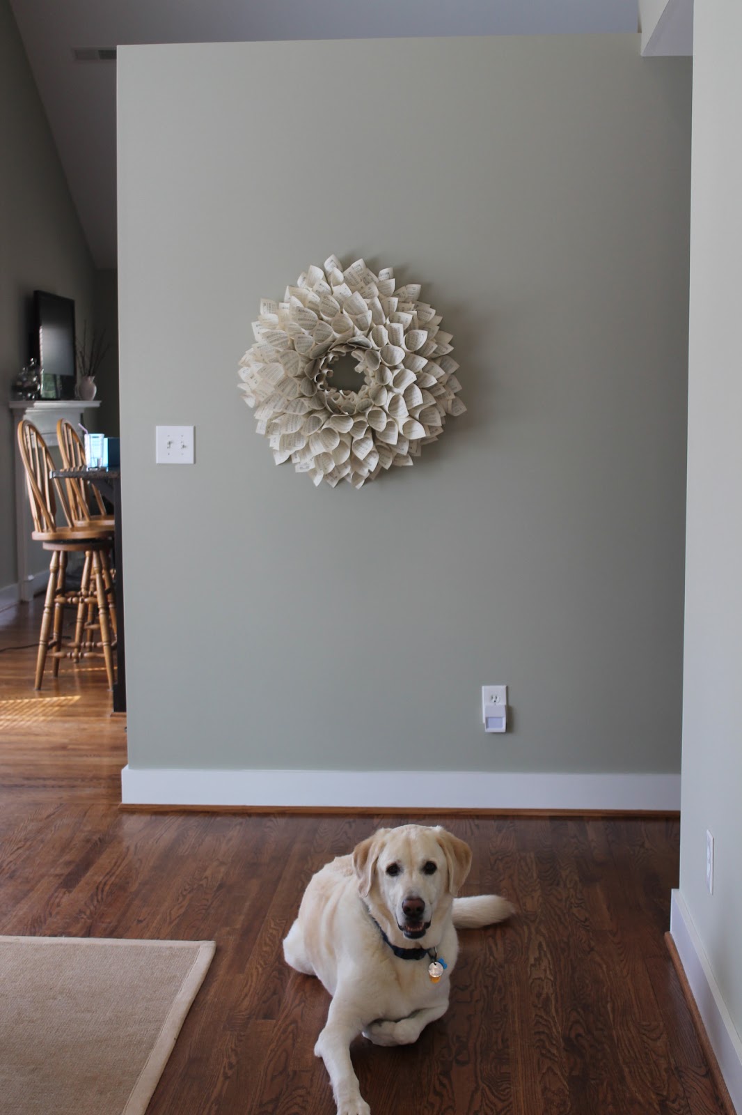 2019 Book Page Wreath UPDATE: This wreath made the move to our new home in 2019, and we hung it over our bed! I absolutely love how it looks here—it adds such a unique, cozy touch to the room.
