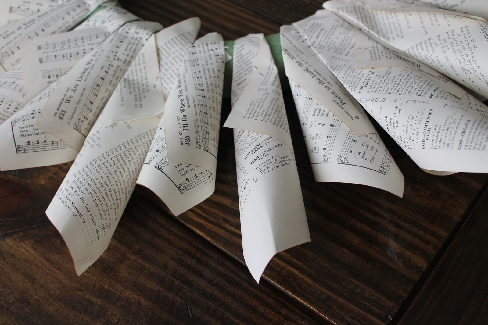This turned out so well! I love the idea of using the hymnal; thanks for the great tutorial!