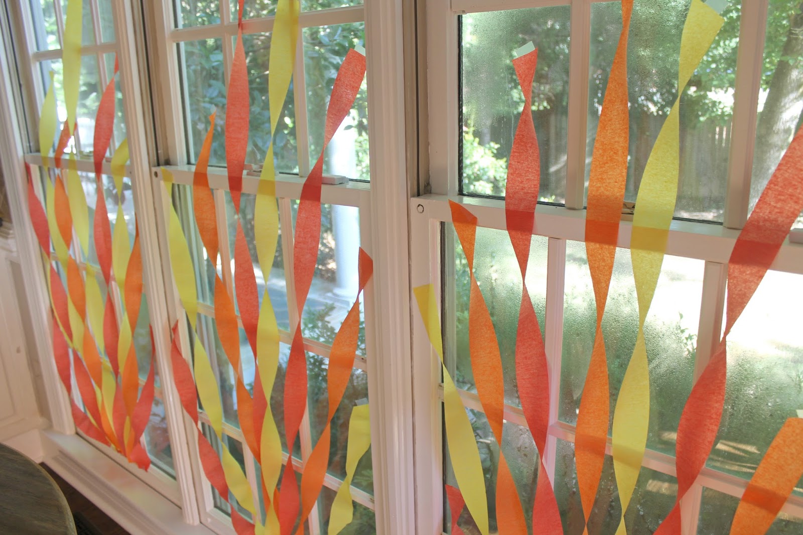 It took me 3 failed Pinterest crafts before I went the easy route and created “fire” with yellow, orange and red crepe streamers.